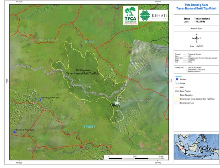 Taman Nasional Bukit Tigapuluh (127,698 hektar) ditetapkan pada Tanggal 5 Oktober 1995 oleh Menteri Kehutanan melalui KepMenHut No. 539/Kpts-II/1995