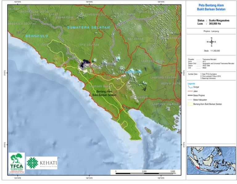 Bentang alam kawasan ekosistem TNWK (130.000 HA) terletak di Provinsi Lampung yang membentang dari utara ke selatan, merupakan bentang alam kawasan hutan di bagian tenggara Sumatera. Di dua kawasan yang terpisah cukup jauh tersebut, tidak merupakan satu koridor bentang alam, namun cukup penting bagi perlindungan species kunci, yaitu Badak Sumatera (Dicerorhinus sumatrensis sumatrensis Fischer 1814) yang sangat terancam punah.