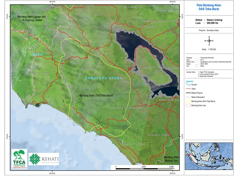 Kawasan DAS Toba Barat membentang seluas 260,100 hektar yang terdiri dari hutan lindung yang berbatasan. Di dalamnya hanya 2 daerah yang benar-benar dilindungi total yaitu:
