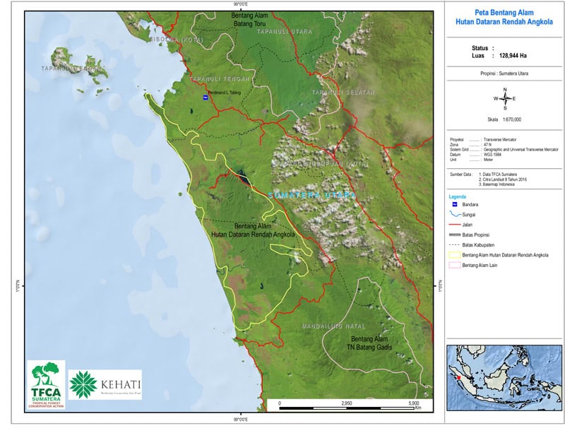 Hutan Dataran Rendah Angkola membentang seluas 128,944 hektar