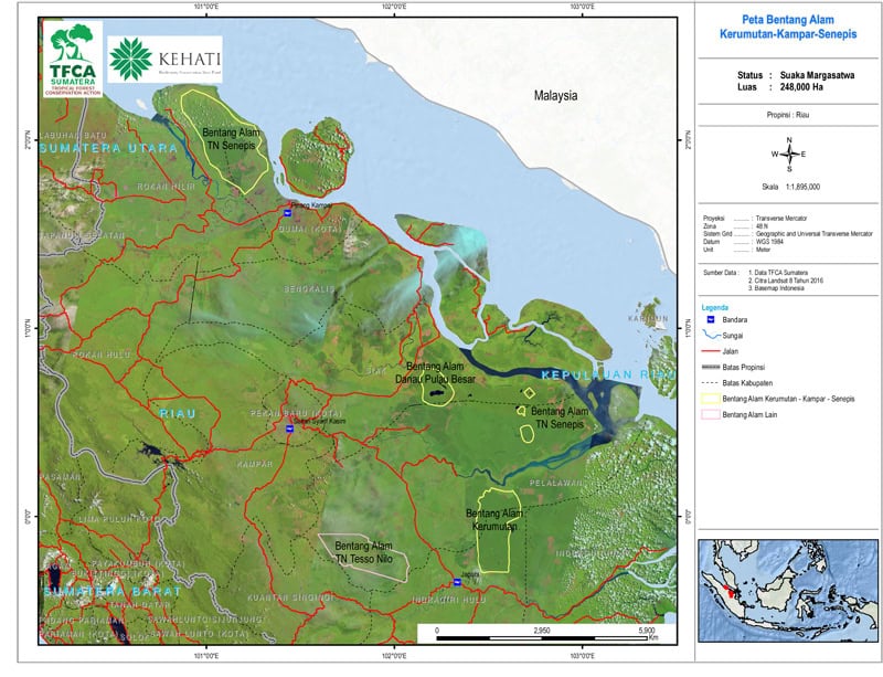 Semenanjung Kampar di Propinsi Riau masih memiliki lebih dari 400.000 Ha tutupan hutan rawa gambut. Kawasan hutan rawa gambut Semenanjung Kampar merupakan salah satu hamparan hutan rawa gambut terbesar yang masih tersisa di Sumatera. Kawasan ini merupakan habitat bagi Harimau Sumatera dan beberapa species yang terancam punah. Areal hutan rawa gambut di riau, mengandung potensi sekitar 16,9 Miliar ton karbon. Sementara khusus di areal Semenanjung Kampar, memiliki potensi sekitar 7 miliar ton karbon. Jenis Habitat yang terdapat di Semenanjung Kampar: 1) Danau; 2) Danau umum/lain: garis pantai, hutan; 3) Kawasan Sungai: hutan; 4) Kawasan Sungai hilir: berair terus; 5) Rawa tanpa Gambut: hutan; 6) Rawa Gambut.