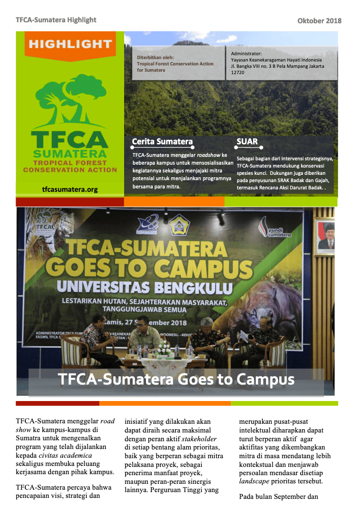 TFCA-Sumatera Highlight edisi Oktober 2018